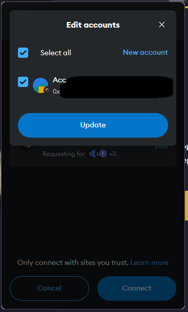 - Choose the account(s) you want to use on GoatSwap by clicking Edit and then Update.